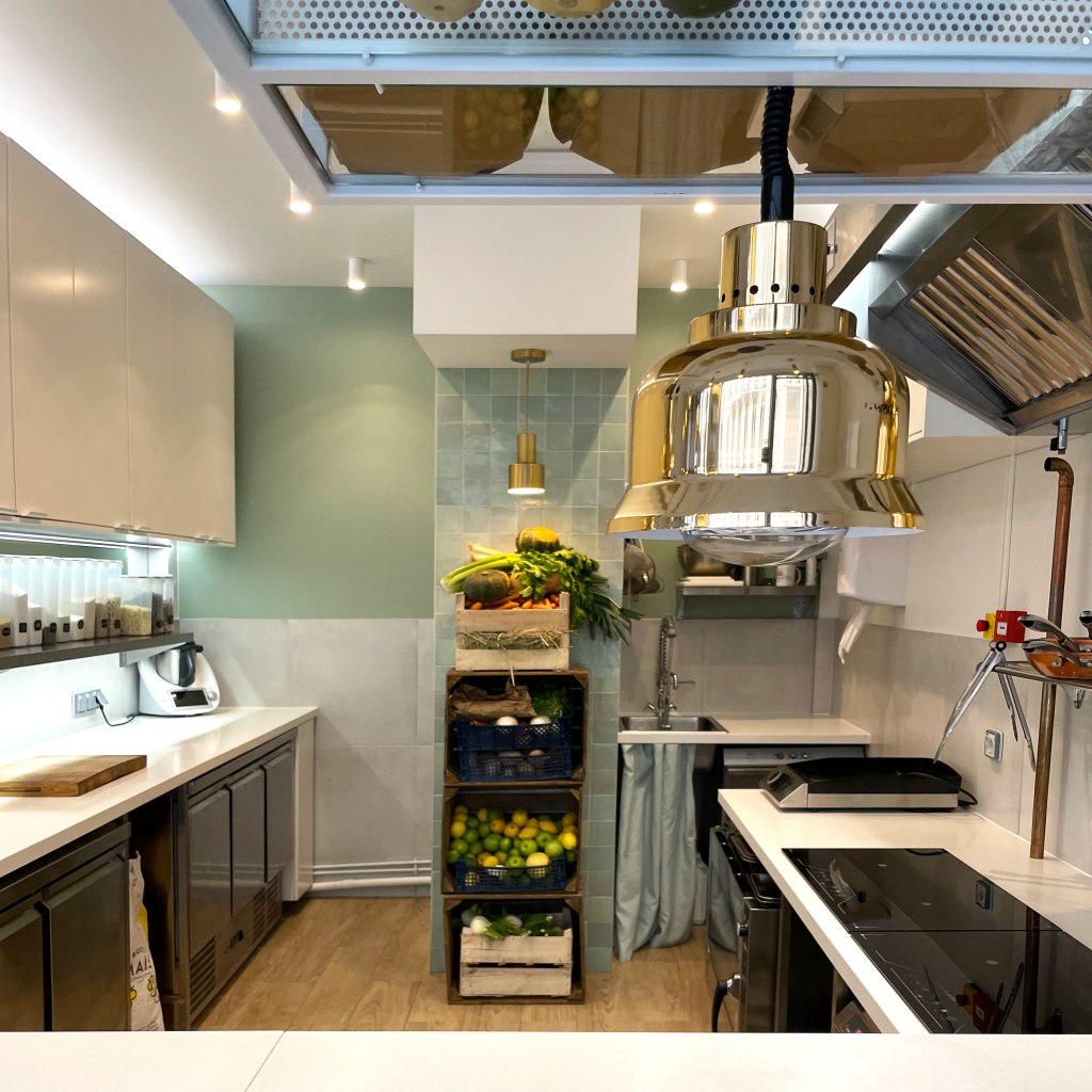 Dans cet espace réduit, chaque centimètre a été optimisé pour accueillir le matériel nécessaire à la création de repas bistronomiques, où la délicatesse et le raffinement sont à l’honneur.