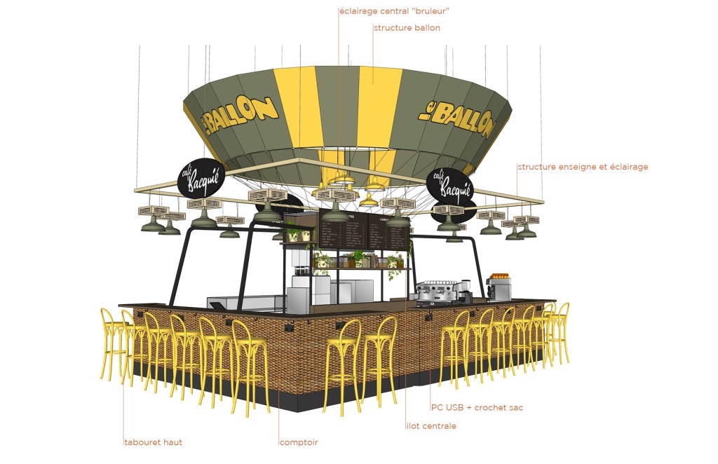 Ce site singulier accueille les visiteurs dans des espaces aussi variés qu’une montgolfière, un wagon de train, une carlingue d’avion ou une péniche, chacun abritant des zones dédiées à la restauration, au travail ou à la détente.