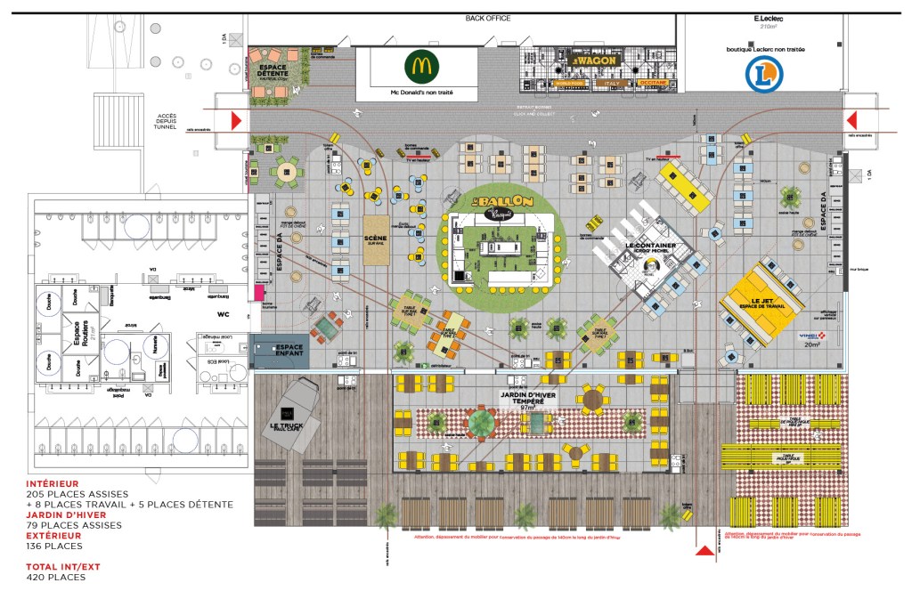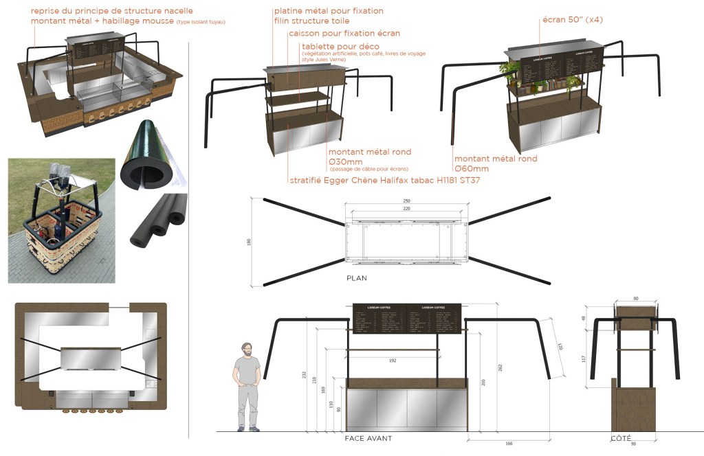 Lorsqu’on évoque une aire d’autoroute, la voiture vient immédiatement à l’esprit. Pourtant, pour ce concept unique, nous avons choisi de réinventer le voyage en explorant une multitude de moyens de transport, tout en excluant volontairement toute représentation visuelle de l’automobile.
