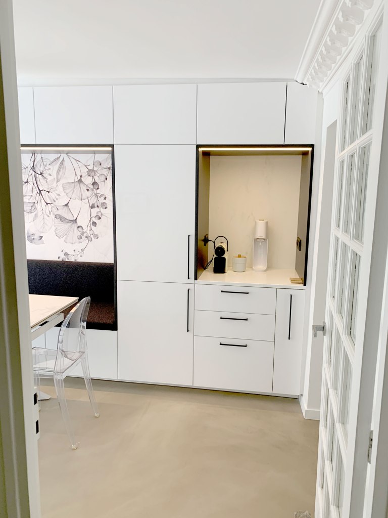 La cuisine et la salle à manger ont également été retravaillées pour optimiser chaque centimètre, tout en privilégiant une esthétique élégante et fonctionnelle.