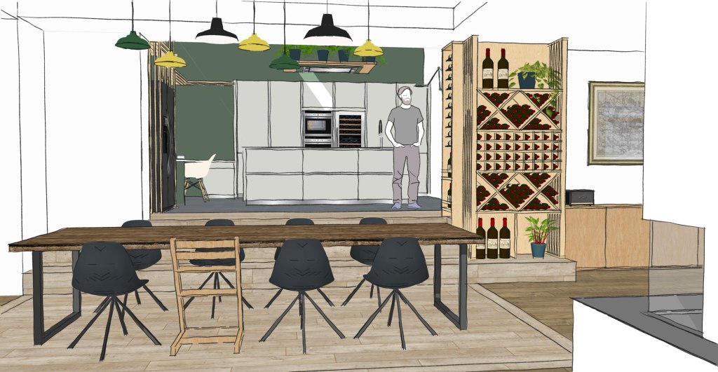 Transformation de l’espace cuisine et conception d’une cave sur mesure, alliant simplicité et élégance. Le projet répond au souhait du client de créer une harmonie entre les différents éléments de mobilier, assurant une continuité fluide entre la cuisine et la cave.