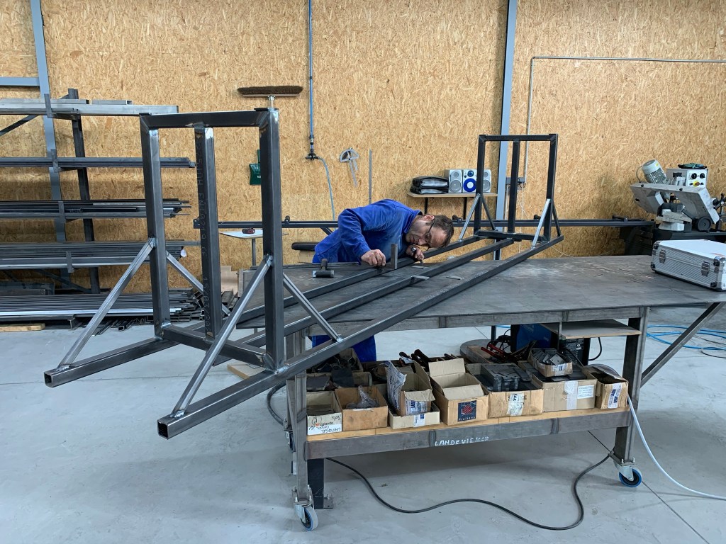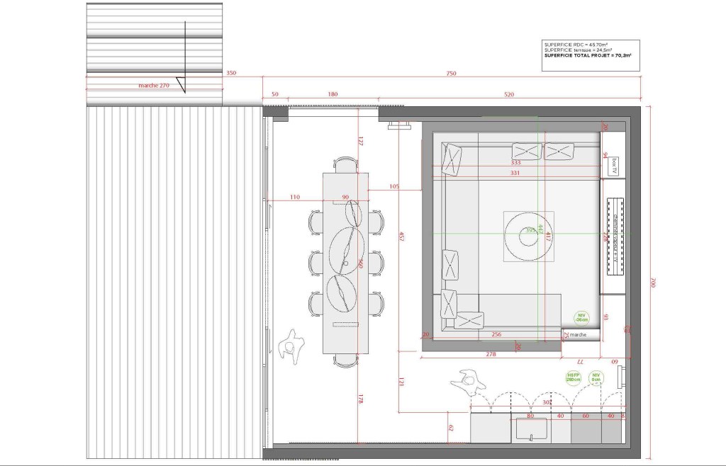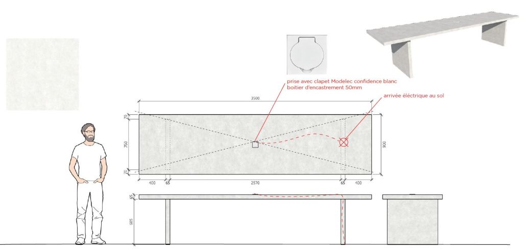 Pour recevoir, une table en béton ciré de 3,50 mètres, spécialement conçue sur mesure, accueille jusqu’à 10 convives avec élégance.