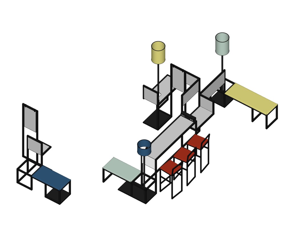 Le mobilier a été conçu autour du « fil noir », marqueur graphique du groupe, pour créer une harmonie visuelle forte et distinctive. Ce mobilier intégre des illustrations inspirées des valeurs et de l’univers du groupe.