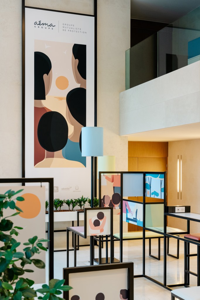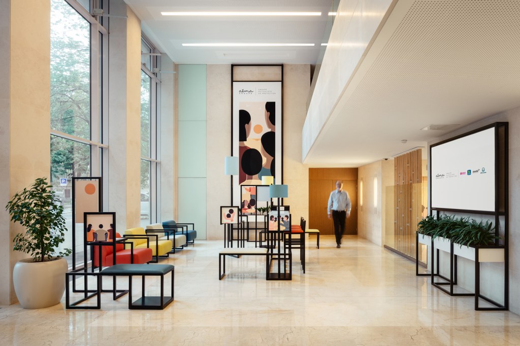 Aménagement d’un espace d’entrée reflétant l’identité du groupe Aéma.