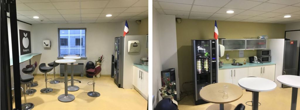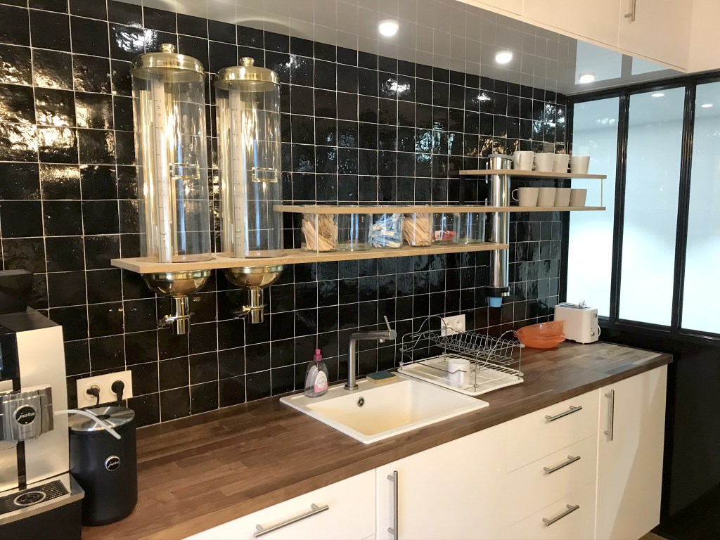 Création d’une cafétéria au sein d’un immeuble de bureaux, pensée comme une parenthèse esthétique dans un univers blanc et cloisonné. Cet espace singulier invite les collaborateurs à se retrouver, se ressourcer et partager des moments de convivialité tout au long de la journée.
