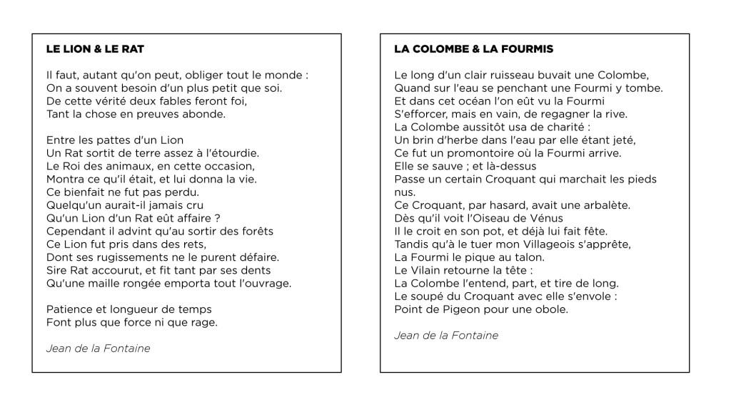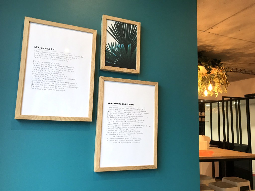 Les fables Le Lion et le Rat et La Colombe et la Fourmi ornent les murs et véhiculent un message inspirant : quel que soit votre rôle ou votre position dans l’entreprise, vous êtes indispensable et votre contribution a de la valeur.