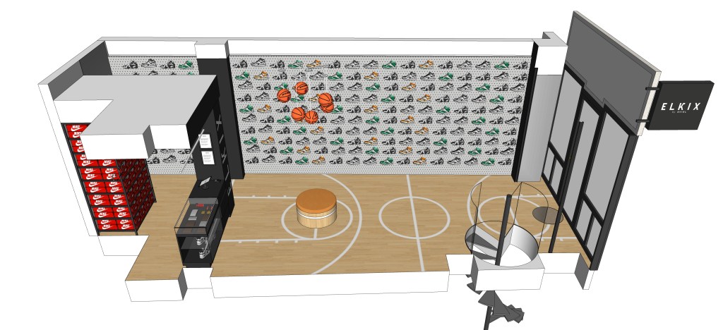 Création d’un concept store consacré aux sneakers rares, niché dans le 8ème arrondissement de Paris. Cette boutique, spécialisée dans l’achat et la revente de modèles iconiques, plonge les visiteurs dans une ambiance inspiré de l’univers du basket.