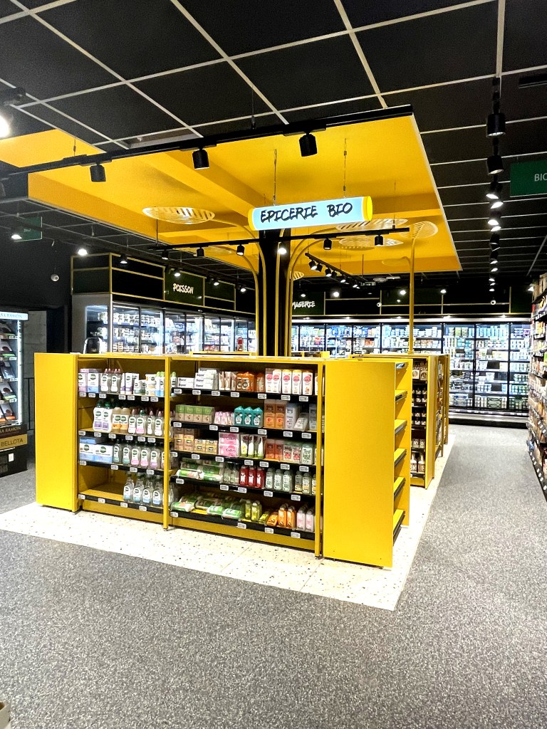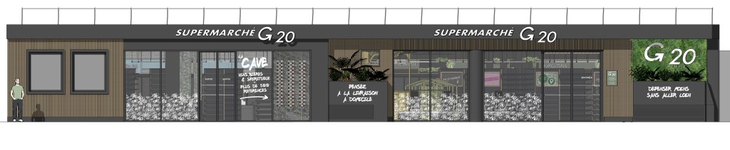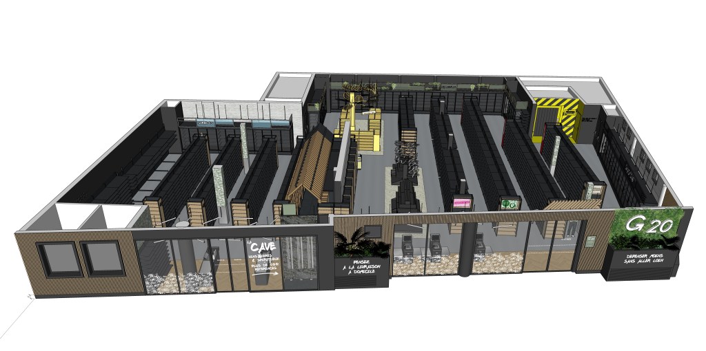 Conception d’un concept pour un G20 de Courbevoie, avec pour objectif de valoriser des espaces clés du magasin, tels que la cave et l’espace bio.