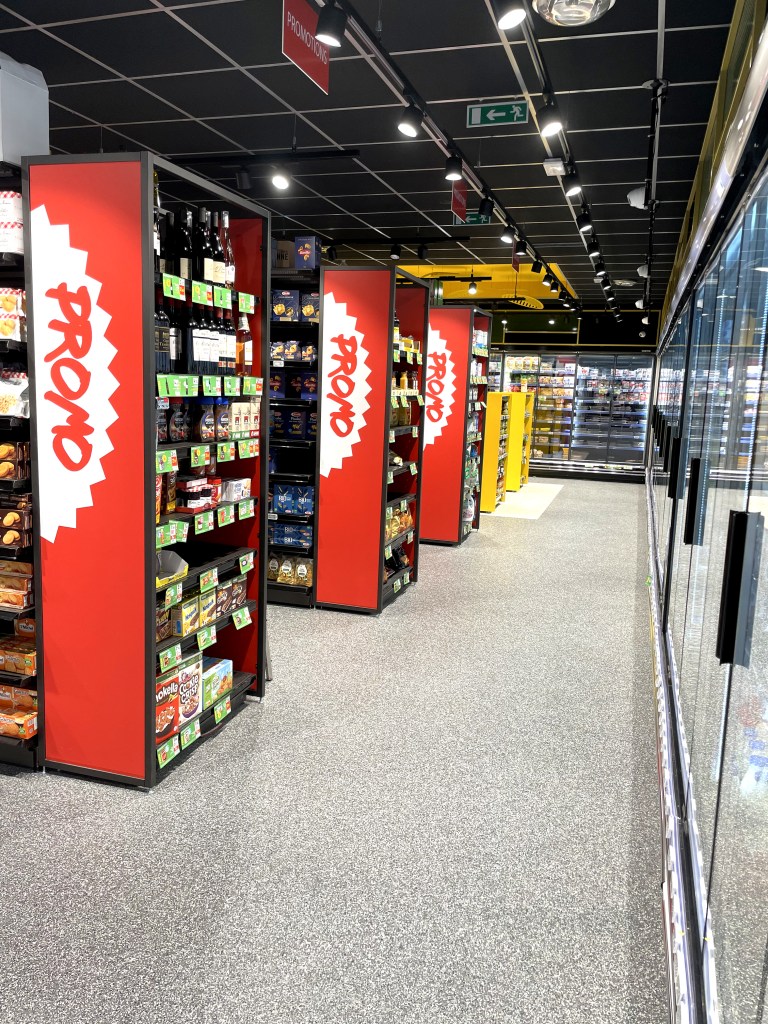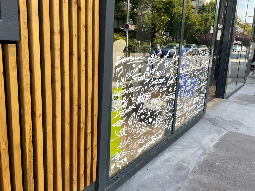 La façade du supermarché, habillée de graffitis créés spécialement pour l’occasion incarne l’énergie et l’identité urbaine de son environnement.