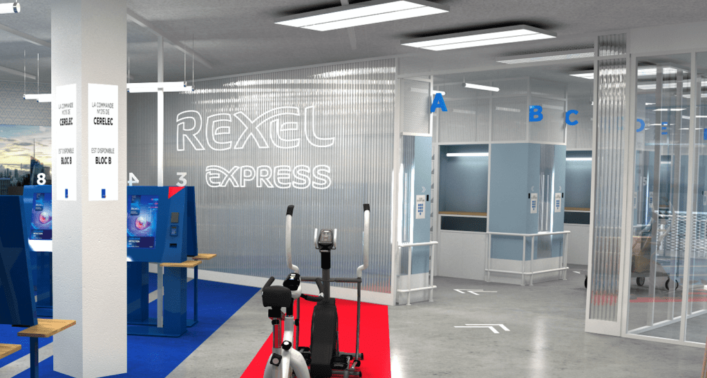 Création du concept Rexel Express à Saint-Ouen. Ce projet innovant intègre un robot de grande envergure, mesurant 10×10 mètres de largeur et 5 mètres de hauteur. Les produits commandés en ligne sont automatiquement préparés par le robot, avant d’être déposés dans des casiers par les équipes Rexel, prêts à être récupérés par les clients.