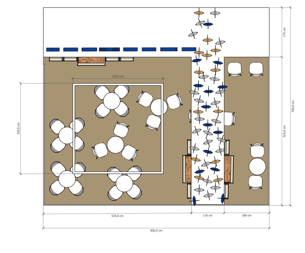 Pour capter l’attention de loin, une envolée d’oiseaux inspirée de l’emblème de la marque s’élève au-dessus du stand, créant un repère visuel fort.